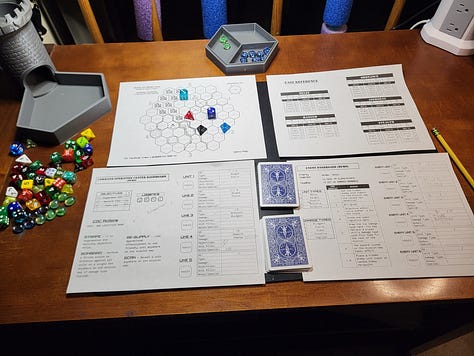 As many will note, TTRPGs originate from wargames, and I somehow designed myself in this direction backwards after finding myself with this nagging feeling that there was a game somewhere in the aether of the analog multi-level hex grid map system I’ve been working on for my campaign setting. Extraction Command currently has more of a print and play board game feel at the moment, something more akin to what I imagine it is like utilizing the mass combat rules of old, but there is definitely a basic gameplay loop that I want to see what people think about.