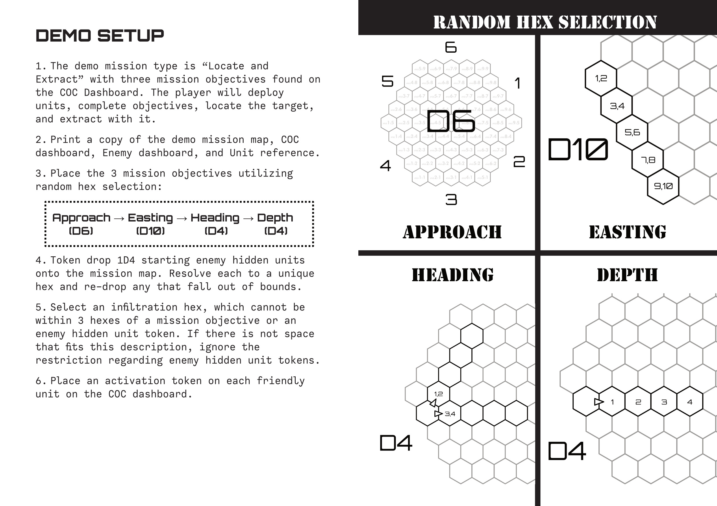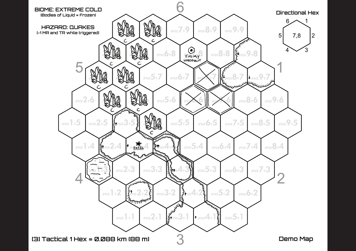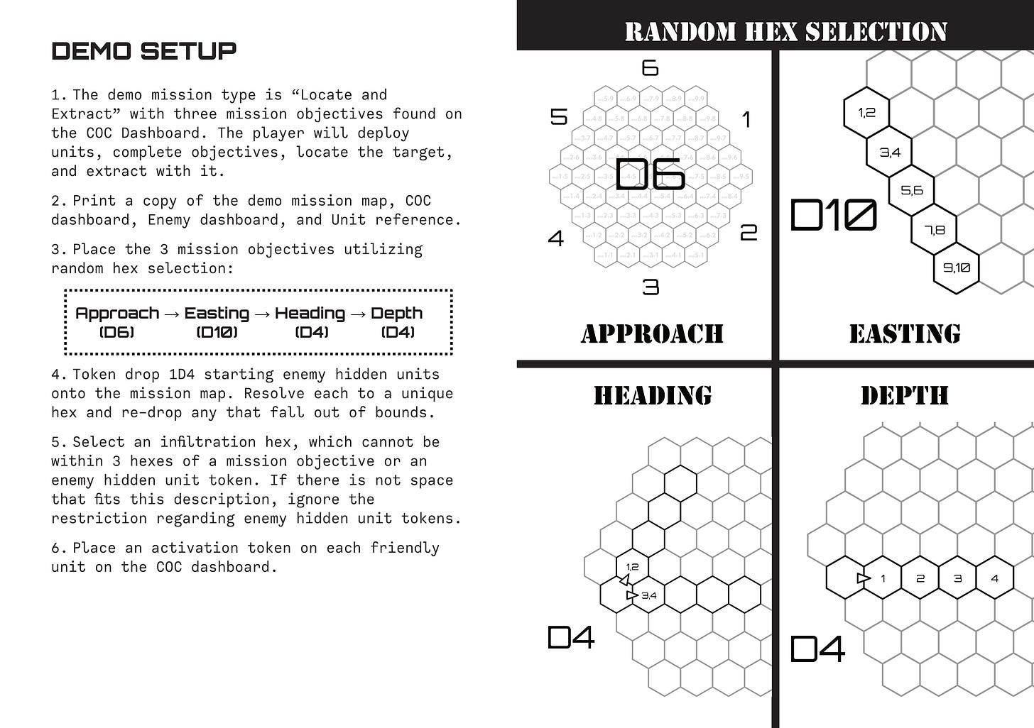 With this demo though, I am looking for specific feedback on satisfaction levels with the gameplay. The static parts of the demo are the terrain on the mission map and the player units - the objective locations, the infiltration hex chosen, the quantity and starting location of hidden enemy units is all variable each time the mission is played. I’m hoping for difficult but entertaining and I think it hits that mark.
